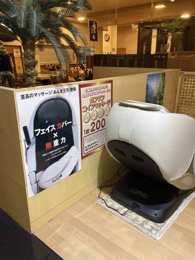 その後には、マッサージチェアが目に入りました。スーパー銭湯にはよくありますよね。私はこれが大好きなので、もちろん利用。思わず寝てしまいそうになるくらい気持ちよかったです。