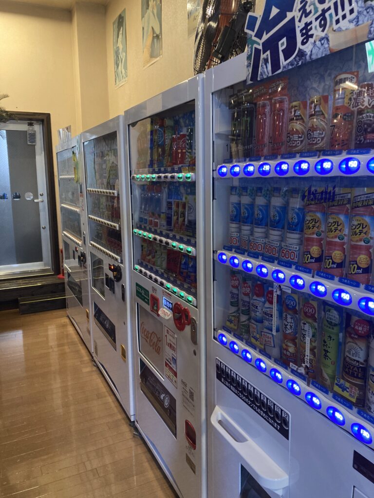 お風呂からあがったら、まずは水分補給へ。自動販売機の数が多く、種類も豊富なので、きっとお好みの飲み物があるはず!私はコーラを買いました。