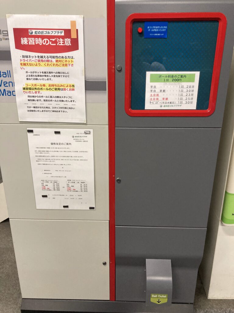 また、平日の木曜日はサービスデーで、通常より出てくるボールの数が多くなります。より多く練習したい場合は、木曜日を狙って行ってみてください!