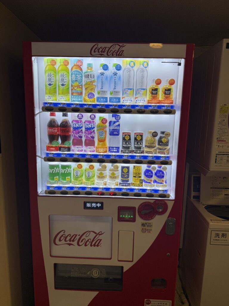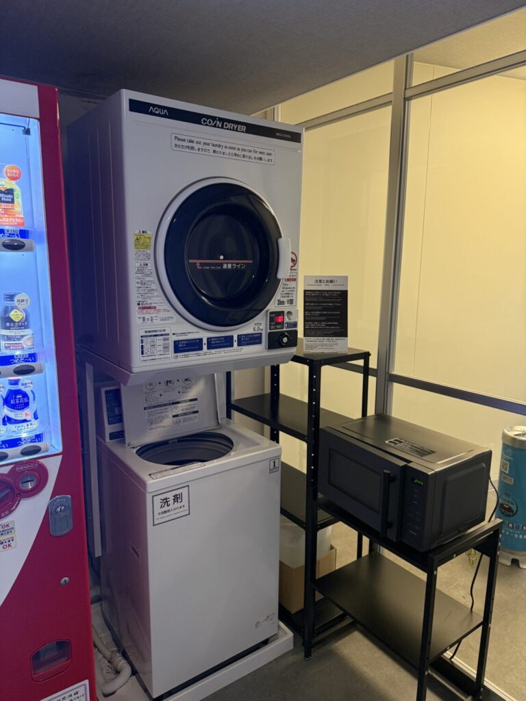 長期滞在や旅先での連泊にも便利な設備として、館内に有料のコインランドリーがあるほか、自動販売機コーナーも備えられています。