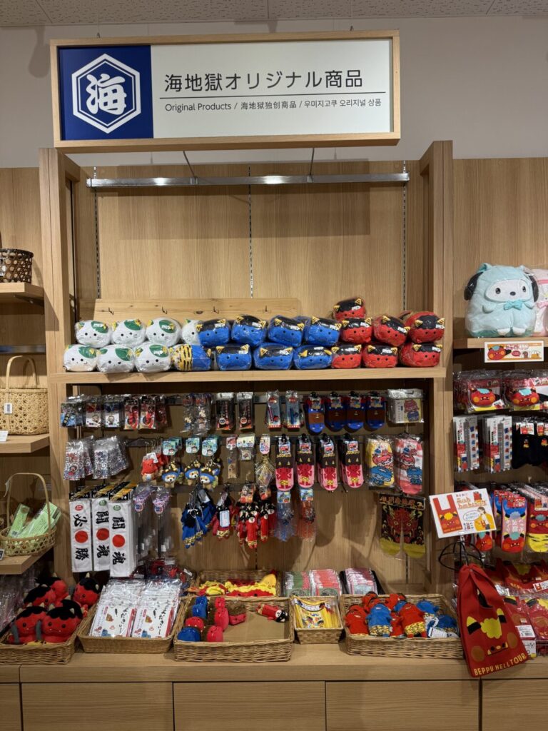 各地獄の売店では温泉卵や地獄蒸しグッズ、オリジナルのバスパウダーなど温泉らしさ満載のお土産が手に入ります。