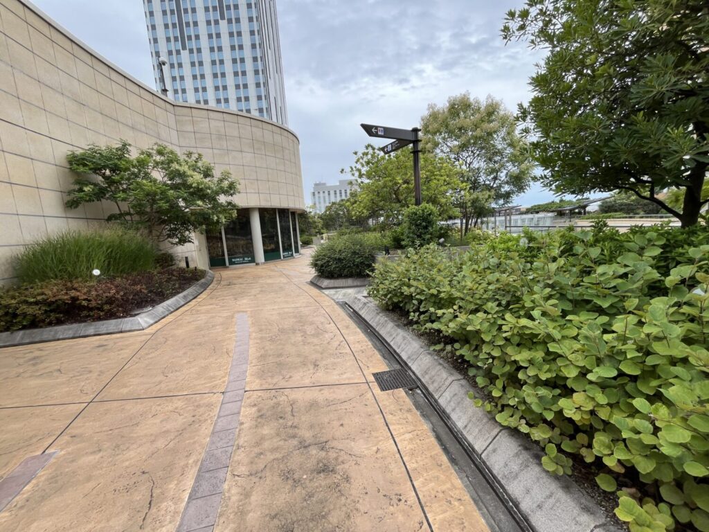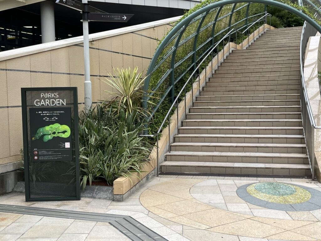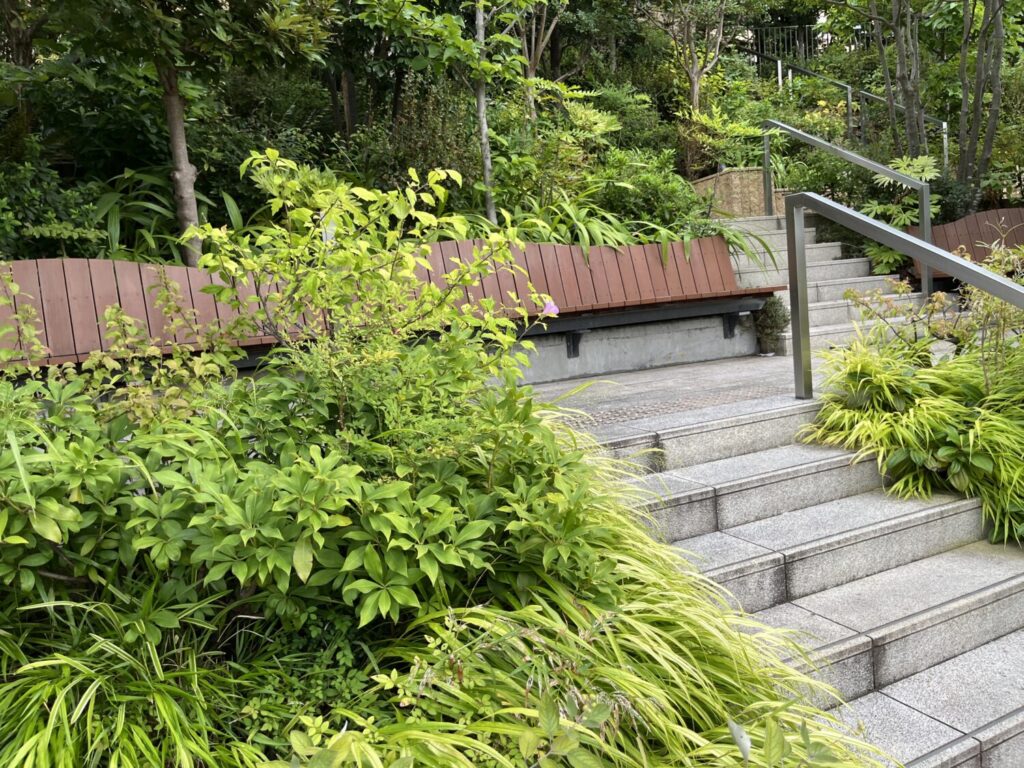 平日の昼間に歩いてみると、意外と人が少ない印象でした。来ている人はいるのですが、それでもたまにすれ違うぐらいな感じで、やはりそう多くはありません。パークスガーデン自体が大きくて広いということや、一面に広がるガーデンではないことから見渡せないということもあるかと思いますが、多くの人は商業施設での買い物がメインなので、わざわざ階段を上ってパークスガーデンに行くことも少ないのかもしれません。