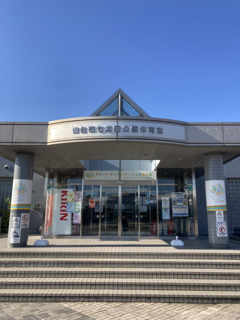 右手には、「七北田公園体育館」がありました。ここは、バスケやバレーのコート2面分のアリーナがあります!多目的室やトレーニングルームもあるので、本格的に体を動かしたい人におすすめ◎