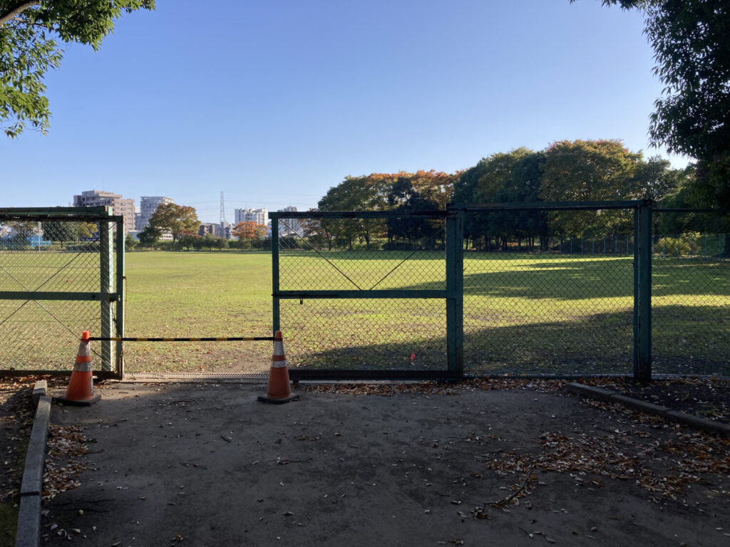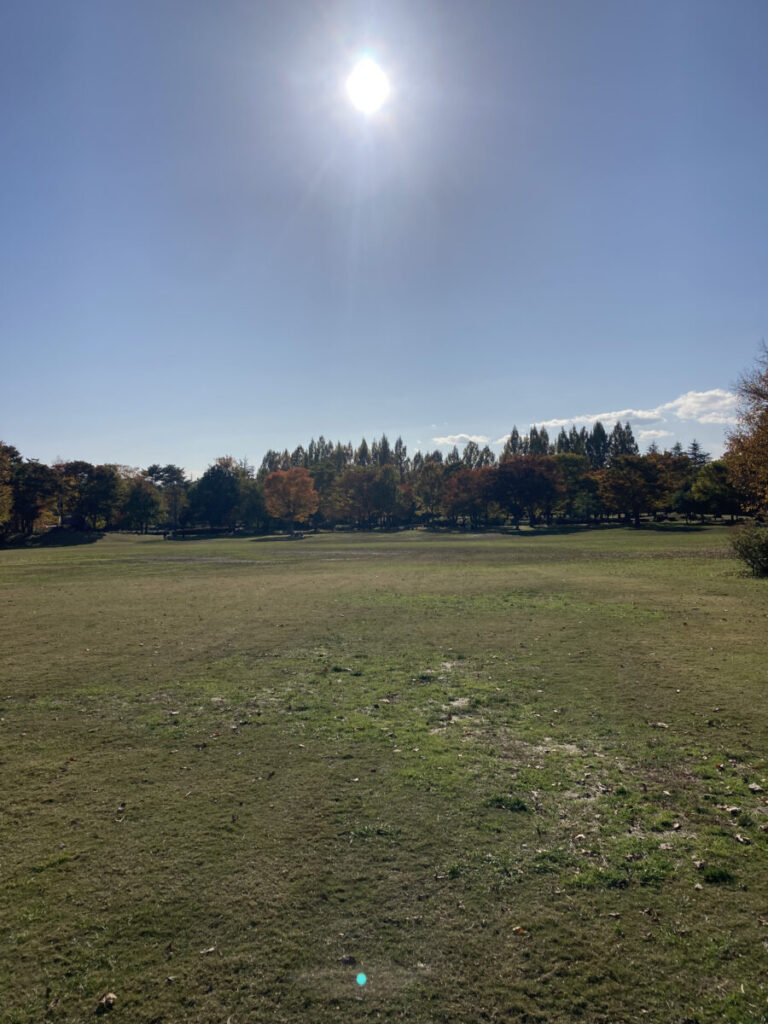 もう少し進むと、開放的な芝生広場がありました。私が行ったときは快晴だったので、とても気持ちよかったです。犬の散歩をしている人や、レジャーシートを広げて本を読んでいる人がいました。