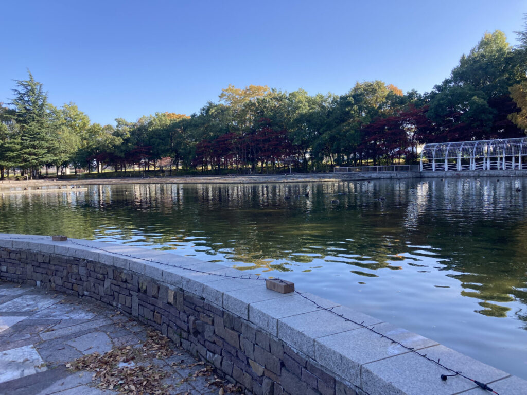 奥へ進むと、「泉ヶ池」という噴水スポットがありました。