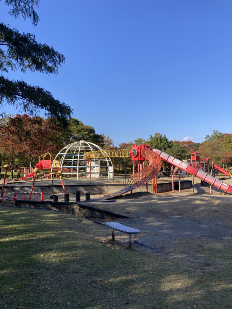 この先に、大型遊具がある広場を発見。平日の午後でしたが、多くのお子さんで賑わっていました。
