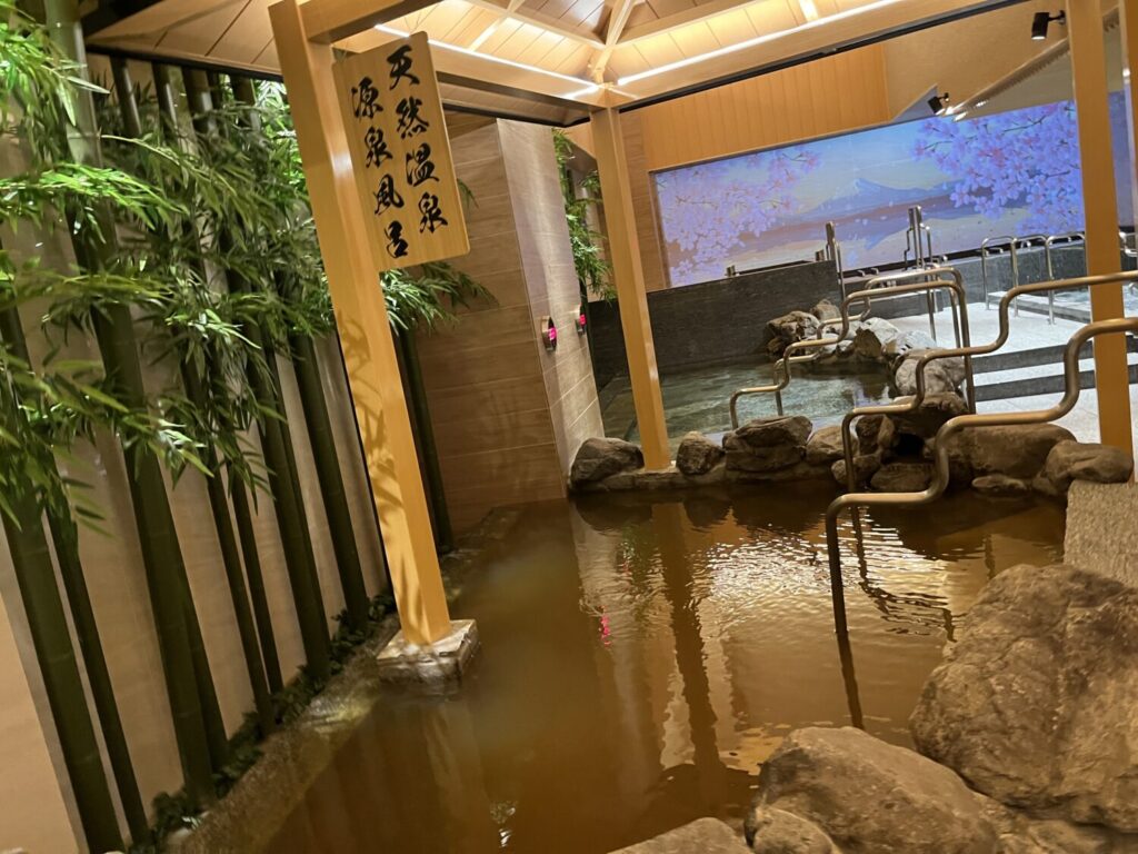 こちらも2025年3月にオープンした新施設なのですが、疲れた体を温泉でゆっくり癒せるんです。そして、何と言ってもお勧めが屋外温水インフィニティプール。都会を一望できる野外プールはまさに大阪のマリーナベイ・サンズ。
