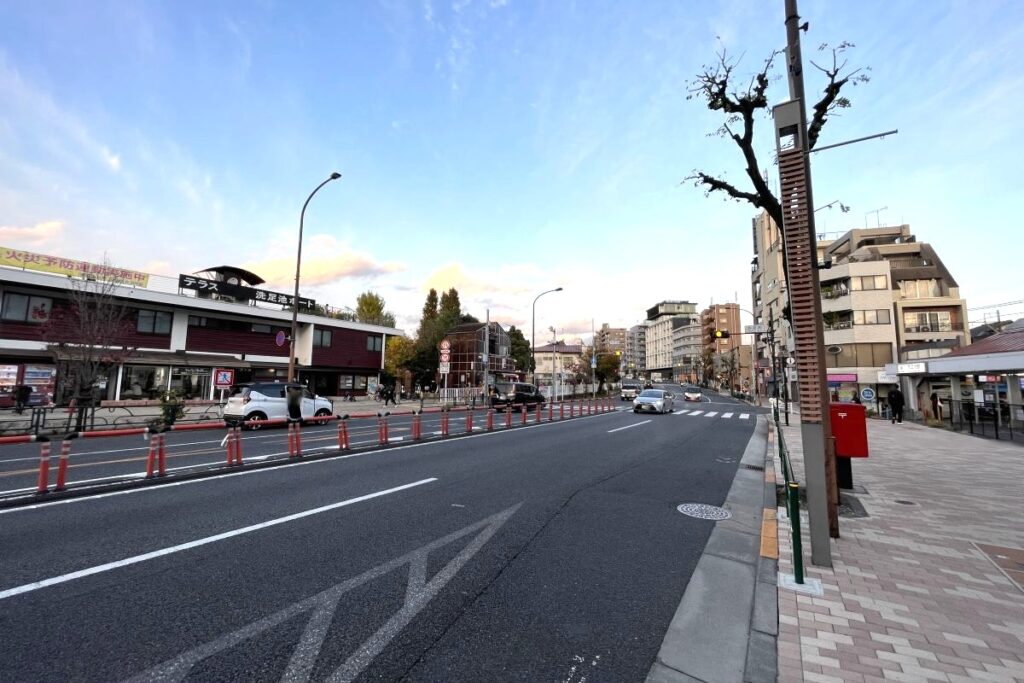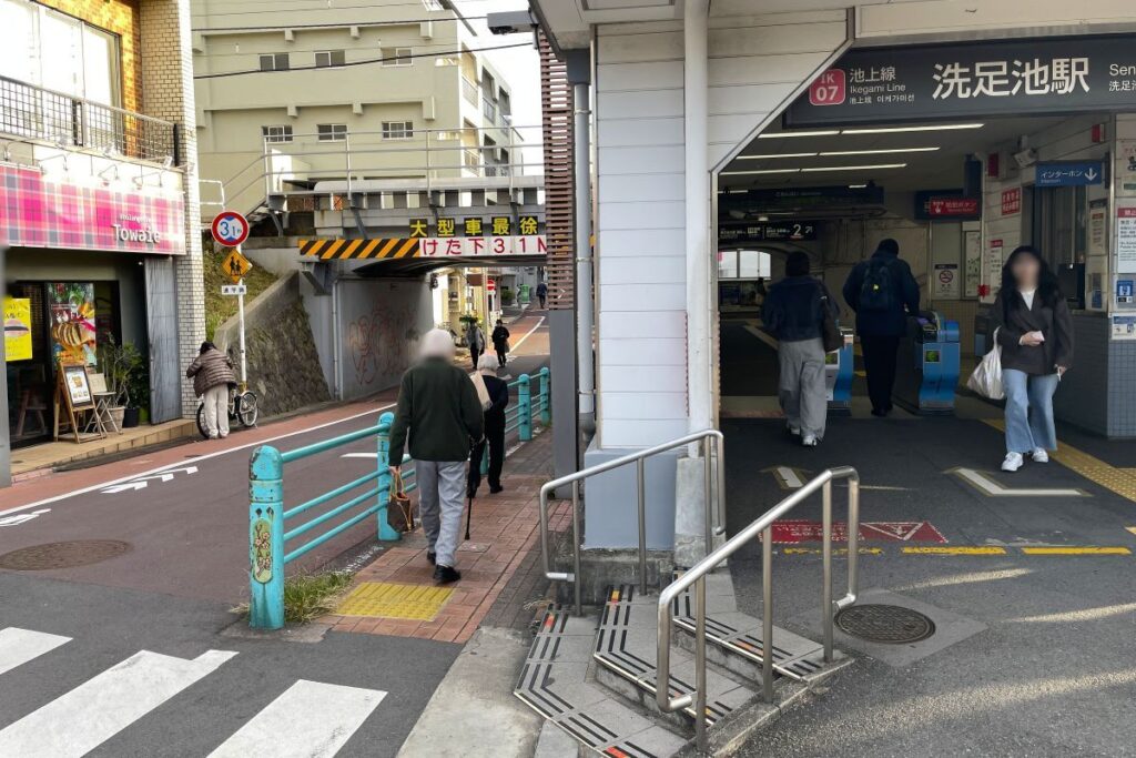 洗足池駅は改札を出ると、目の前に中原街道を挟んで洗足池が見える。商店街は、改札を出て右側にくるりまわりこむと、ゆるやかな下り坂。