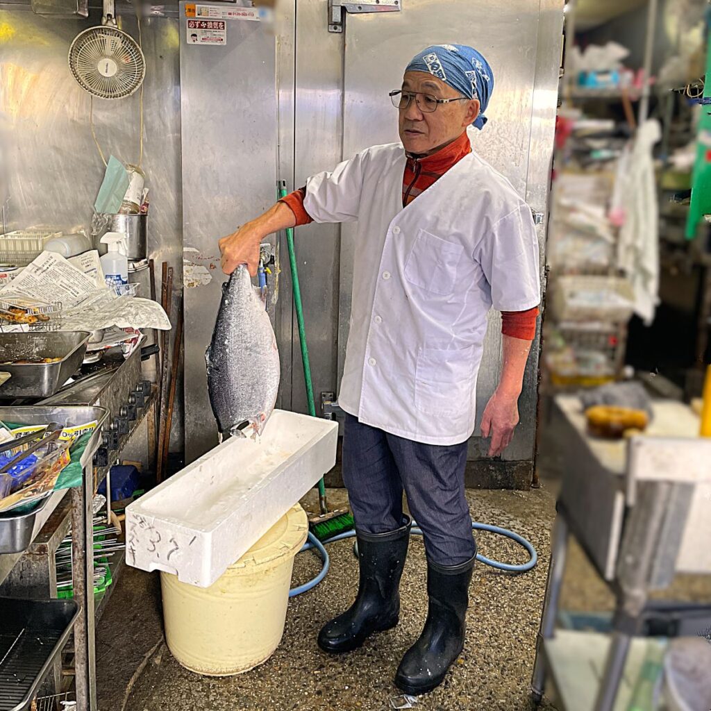 すぐさま、アジの産地だね、と亀山喜久男さん、そこからフグちりや鯛の刺身が好物だった父親の話に及ぶと、