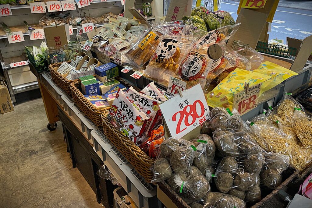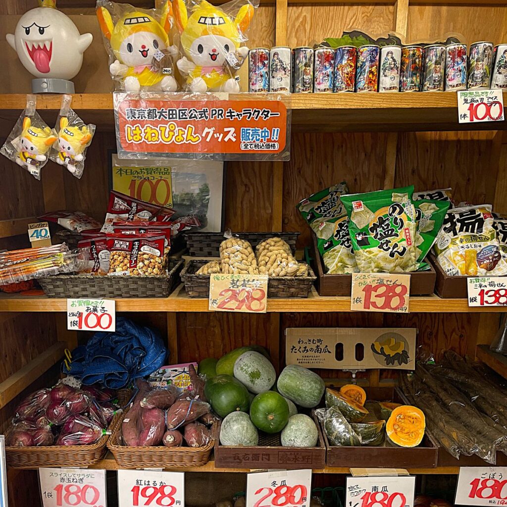 「おおたの逸品」や「大田のお土産100選」、洗足池、洗足流れの桜などで採取した雪谷産の「ゆき蜜」、大田区の老舗佃煮屋がつくる「羽田大谷の若炊あさり」などや、地方の特産品、酒、ビール、各種調味料、缶詰、カレー、菓子類、鍋の素、お米に至るまで、野菜のみならず、肉、魚以外なら大抵揃う。