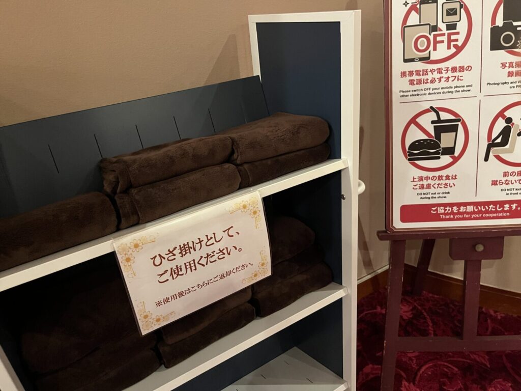 観客席は舞台を囲むように作られていて、どこにいても演者が見えるようになっています。席の間隔や前後の席の距離は狭く、通路側でない中のほうの席の人が外に出る場合は、前を歩いて行けるほどの面積もありません。そのため、誰かが通路側に出るとなれば、その間に座る人はみな通路側に出ないといけないほどです。そのような工夫のおかげで、3階の一番奥の席でも臨場感があり、しっかりストーリーに引き込まれました。