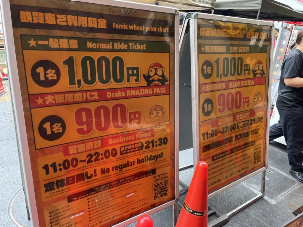 乗車料金は一般で1000円。営業時間は11:00~22:00まで。乗車口で切符を切るスパイダーマンに扮したスタッフはドン・キホーテ道頓堀店の副店長だとか。こういうサービス精神が大阪ならではですよね。あべのハルカスや梅田のビル群まで見渡せるようなので、大阪を一望してみるのもいいですね。