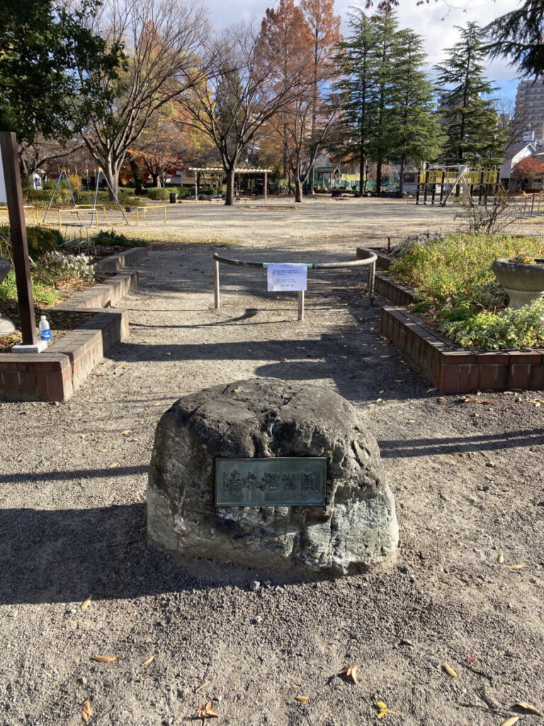 グラウンドの裏へ行くと、「清水沼跡」の石碑がありました。ここは元々沼で、埋め立てて「清水沼公園」ができました。