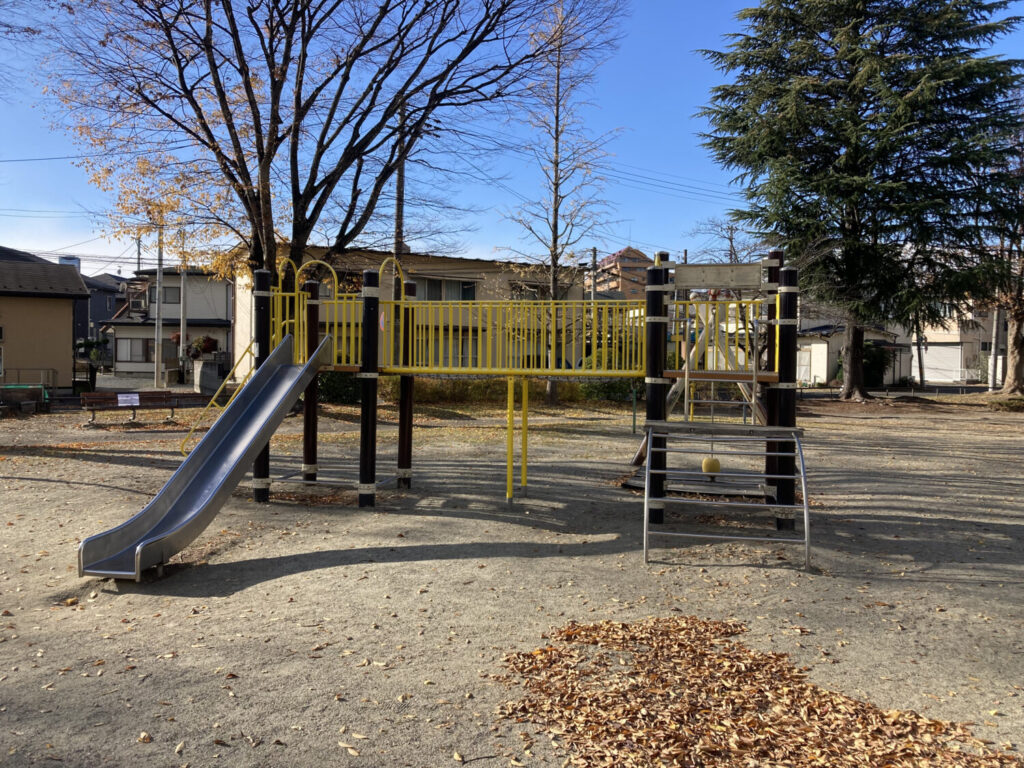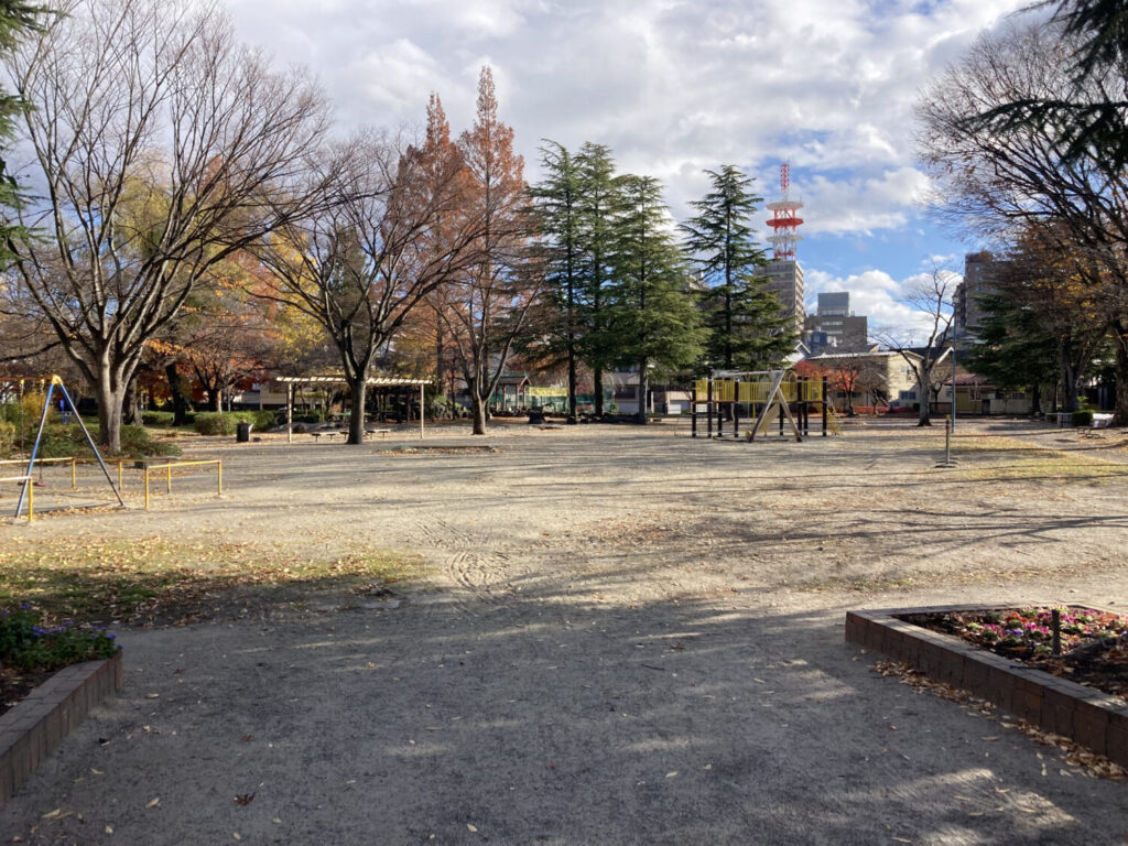 公園は広々としていて、遊具もたくさんあります。空と雲も相まって、いい景色ですね。