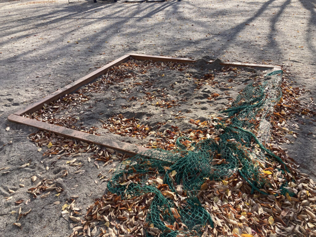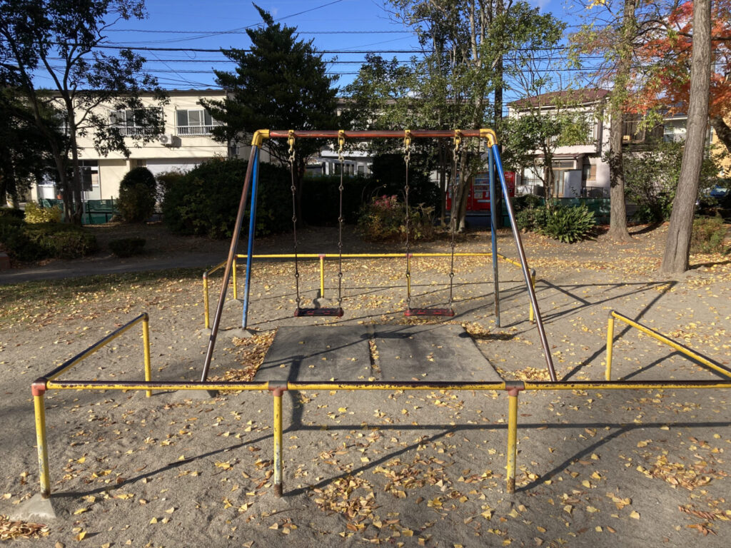 中に入ると、ブランコや砂場、鉄棒など、さまざまな遊具がありました。