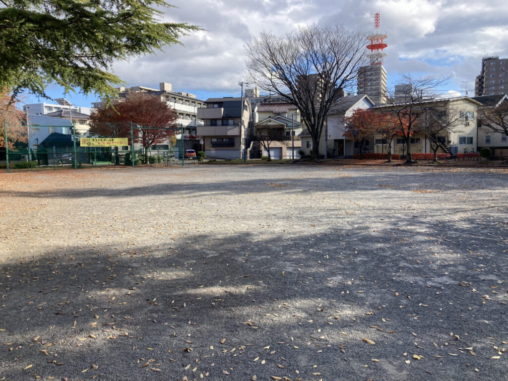 この木の奥はグラウンドになっていて、野球やサッカーなど、さまざまな運動ができそうな広さがあります。