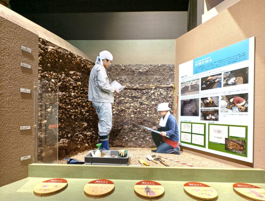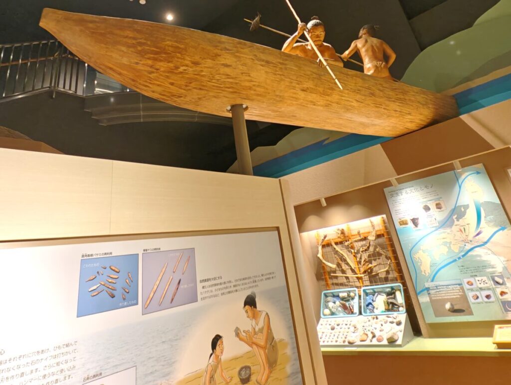 館内はとても明るい雰囲気で、貝塚の成り立ちや出土品などが誰にでも分かりやすく展示されています。縄文人が漁をしている様子が再現されるなど、リアリティを感じる展示が多いのも嬉しいポイントです。