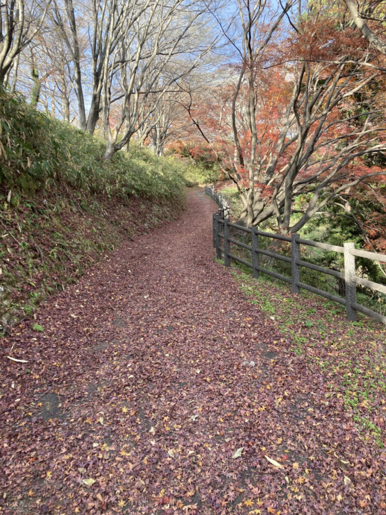 山道に入ると、このような景色が見えます。私が足を運んだときは秋だったので、紅葉がとてもきれいでした。