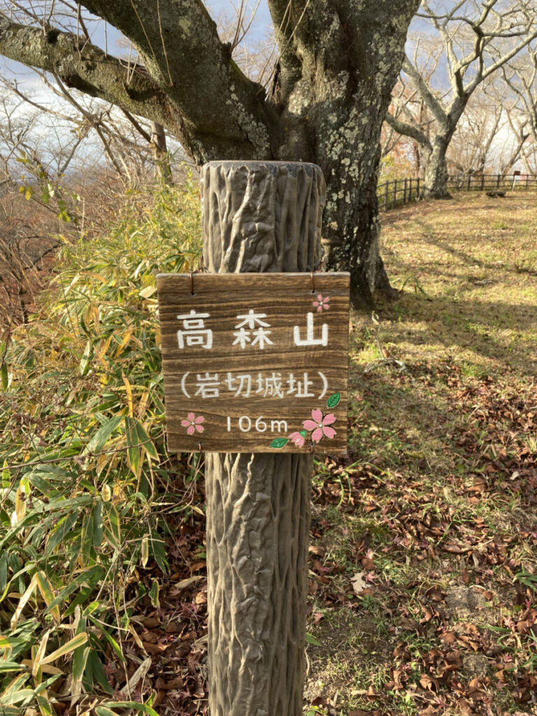 看板があり、標高は106mのようです。「岩切城跡」は「高森山(たかもりやま)」とも呼ばれています。