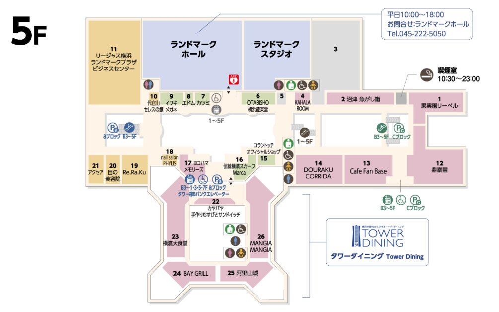 おすすめは横浜ランドマークタワー5階(ランドマークプラザ5階からアクセス可)のタワーダイニングエリア。