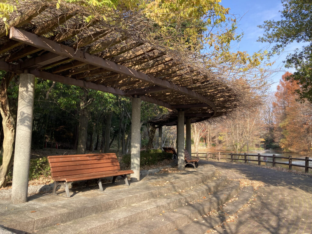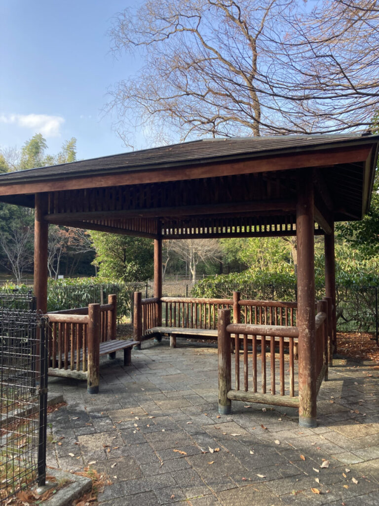 屋根付きの休憩場所があったので、ここから噴水を見てのんびりするのもよさそうです。