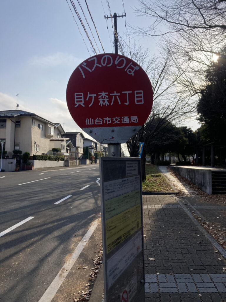 - 仙台市バス「貝ケ森六丁目」で下車後すぐ