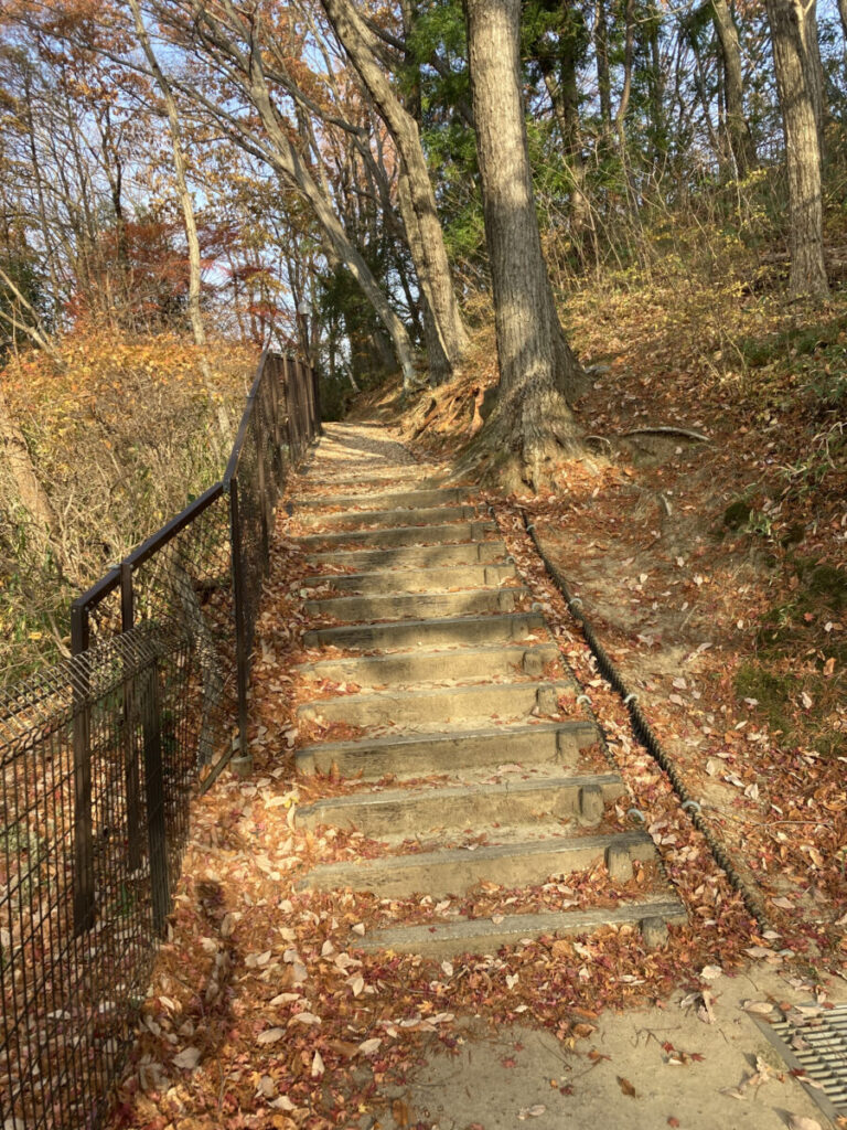 「貝ケ森中央公園」にはこのように少しだけ山道があるので、歩きやすい靴がおすすめです。