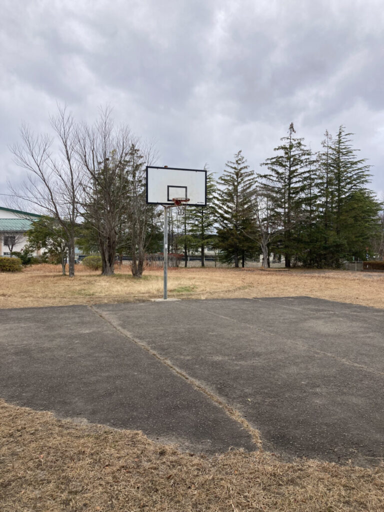 園内を歩いていると、バスケットゴールがありました。こちらはゴールが一つだけだったので、本格的な試合はできませんが、遊びでやるなら十分でしょう。