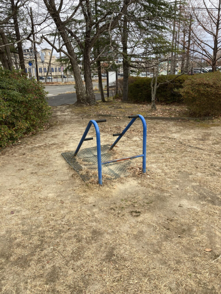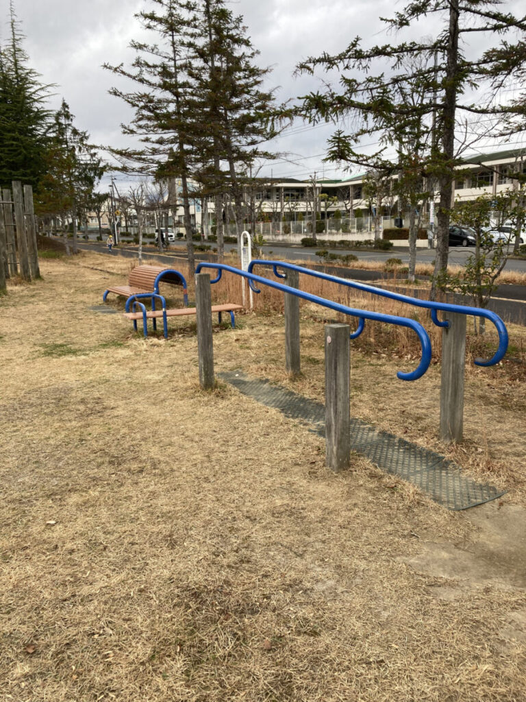 公園の東口の方には、遊具と健康器具がありました。アスレチックすべり台のようなものがあり、体を動かすのが好きなお子さんはうれしいと思います。