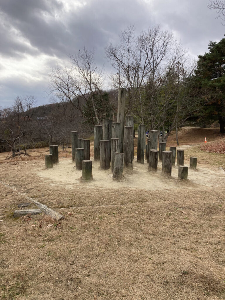 他にも、ジャングルジムのような遊具や木の足場のような遊具があり、通常の公園にある遊具とは異なるものが多くある印象です。