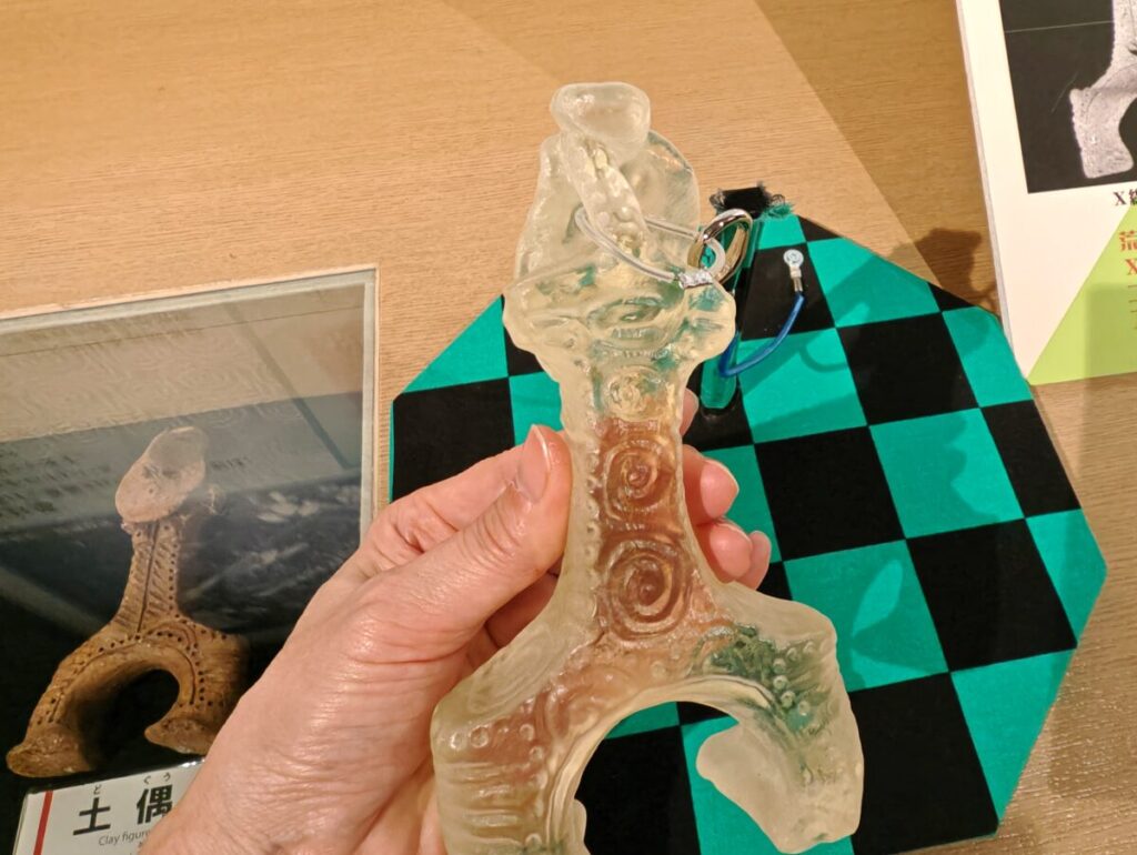 この土偶のレプリカは、X線CTスキャンの3Dデータを基に作られたもの。実際に手に取って、裏や細部を観察してみましょう。