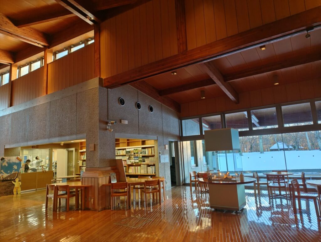 エントランスから奥へと続く空間には、ゆったりとした休憩スペースや自由に閲覧できる図書が整えられています。この日は赤ちゃん連れからご年配の方まで、思い思いのペースで利用されている姿が見られました。