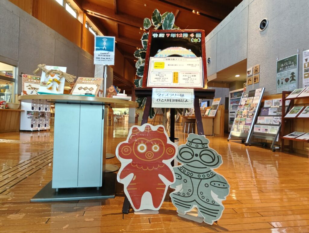 可愛らしい土偶が出迎えてくれるエントランスロビーは、広々としたとても明るい雰囲気です。