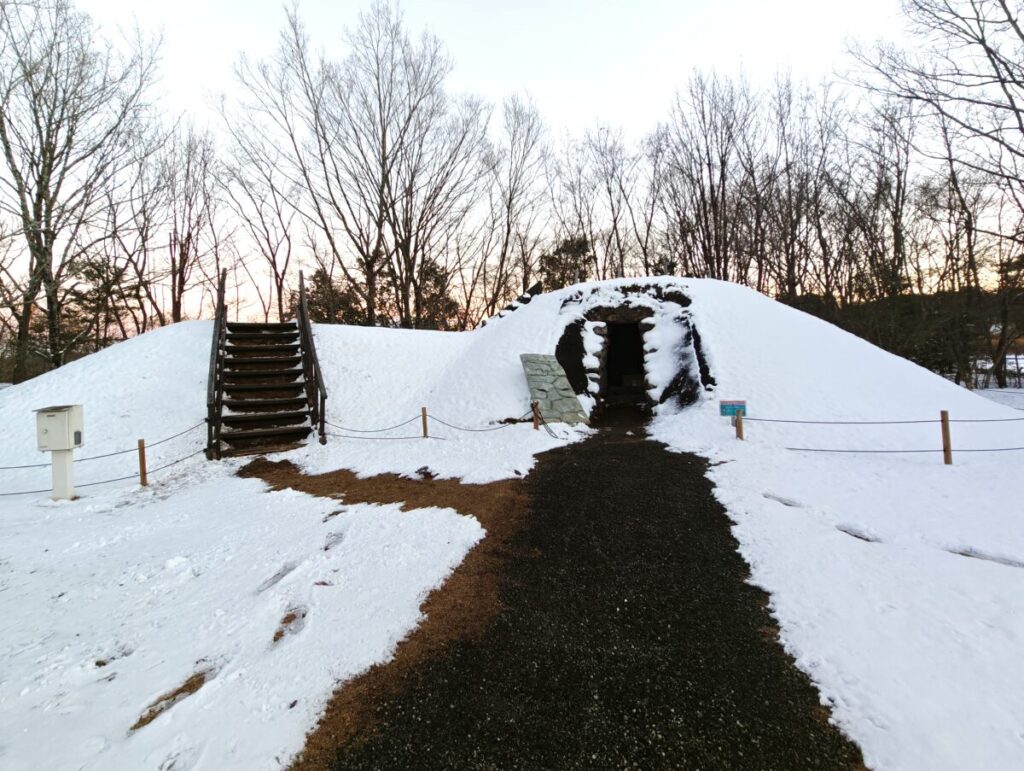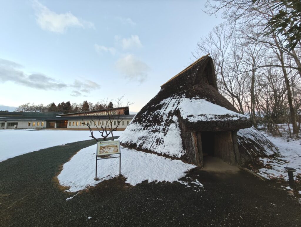 広場の道はきちんと除雪され、建物の中もきれいに保たれています。このような天候の日でも安心して見学できるのは嬉しいですね。