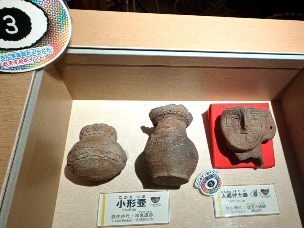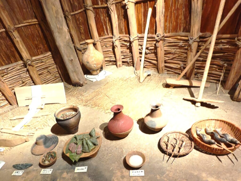 各時代のブースの近くにはそれぞれの時代の遺物が展示されています。その時代の人々がどんな家に住んで、何を食べて、何を作っていたのか…。一連の展示を通して、当時の暮らしぶりが分かるようになっています。