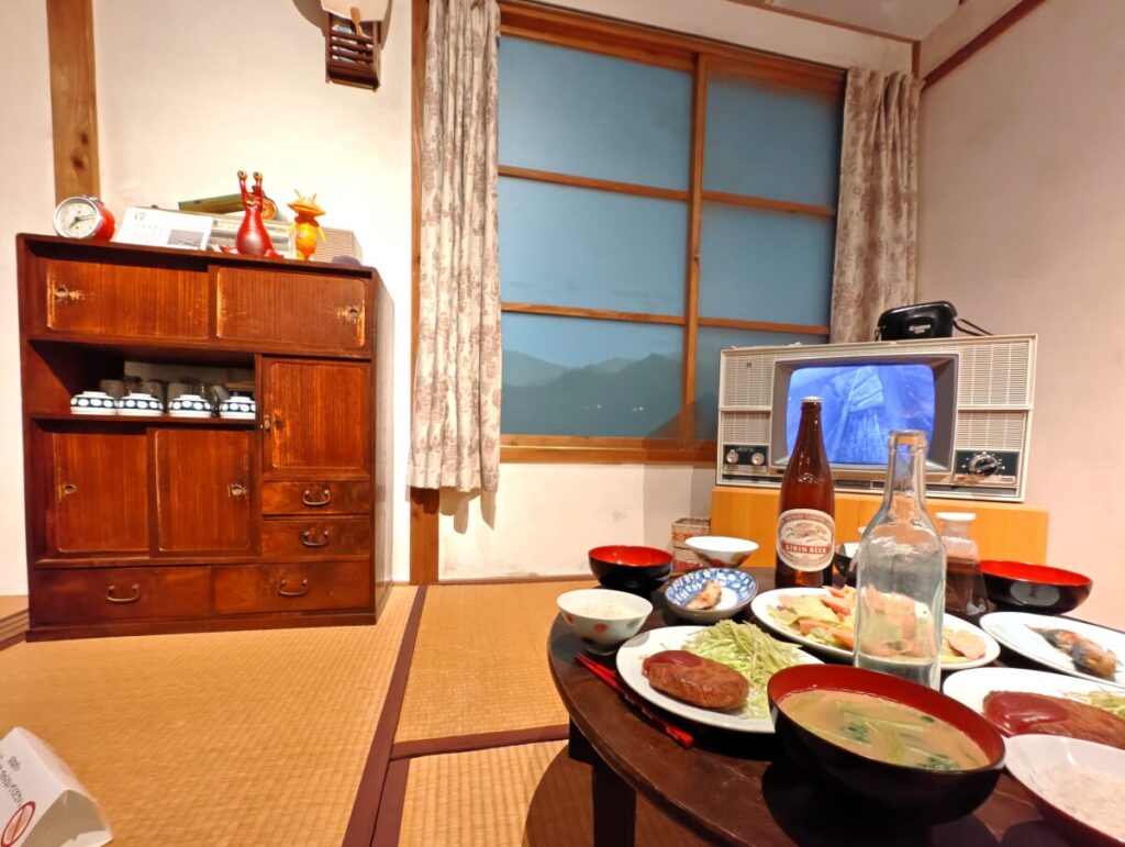昭和のちゃぶ台のある部屋は、懐かしさを感じる人、初めて実物を見た人など、それぞれの年代によって楽しめ、会話が弾む人気のブースです。