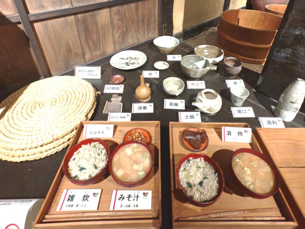他の多くの博物館では古い時代から現代へと移り変わる展示がほとんどですが、ここではその順序が逆転しています。学芸員さんはその理由を、「身近な時代から少しずつ時代を遡っていくことで、食卓や家の壁、道具が変わってきたことがより分かるのでは」とお話しされていました。