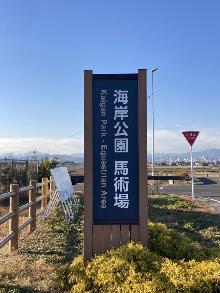 ちなみに、入り口には「海岸公園馬術場」の看板があります。足を運ぶ際は、こちらを目印にしてください。