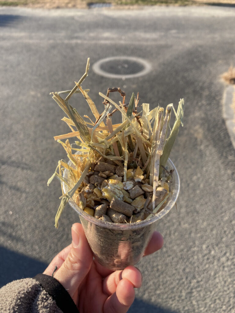 そして、無事に管理棟でエサを購入しました!お馬さんたちがどんな顔で食べてくれるのか、とても楽しみです…!