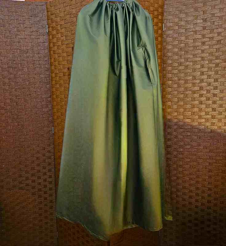 ハーブを選んだ後は、用意されている大きなマントに着替えます。松山さんがいろいろ試されて選ばれたマントは、生地に厚みがあり保温性が高く、しっかり温まりながら汗をかけるのが特徴です。
