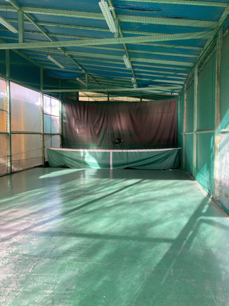 さっそく中に入ると、ズラッとバッティングマシンが並んでいました。ざっと10打席前後はあったかと思います。