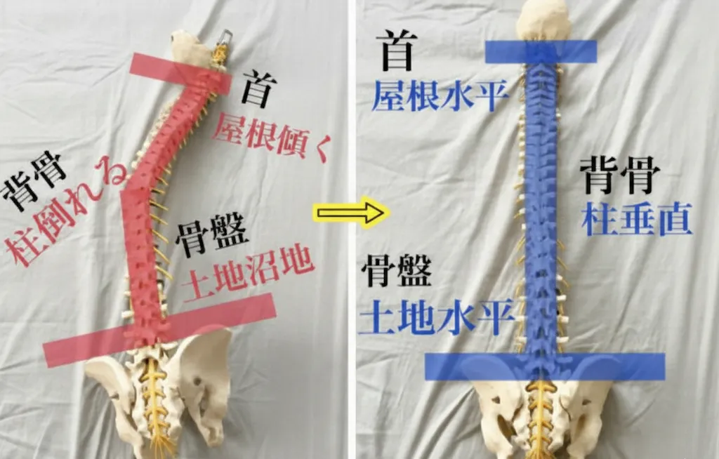 「家で例えると、骨格は『土地』です。土地が沼地のようにぐちゃぐちゃだと、いくら良い柱(背骨)を立てても傾きますよね? そうすると屋根(頭)も落ちてくる。