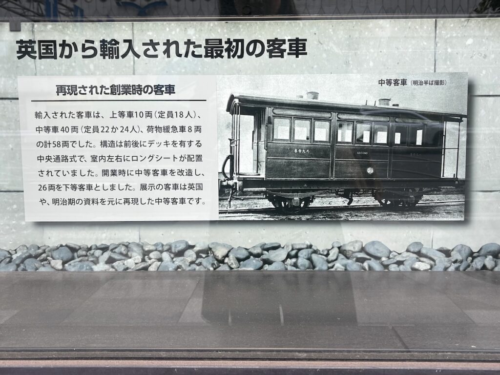 鉄道創業当時の機関車についての説明、鉄道建設に貢献した人々の紹介、さらに鉄道旅の際に携帯していた小物やこの時代の鉄道玩具など、展示内容は様々です。