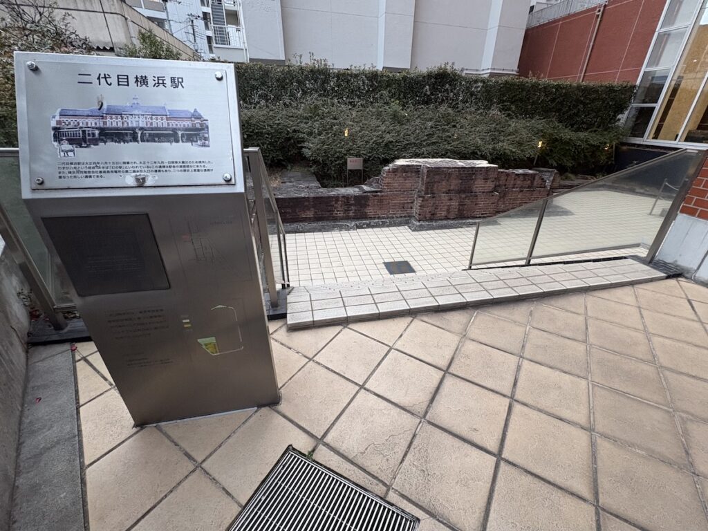 現在は「高島二丁目広場」があり、その傍らに二代目横浜駅の遺構が保存されています。
