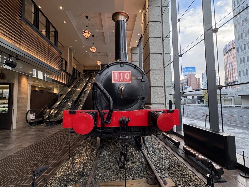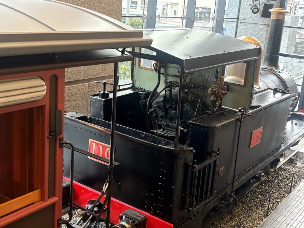 実はこれ、鉄道が開通した当時に実際に使われていた「110形蒸気機関車」なんです!