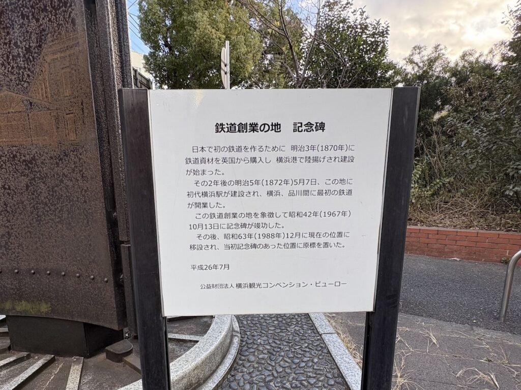 旧横濱鉄道歴史展示(旧横ギャラリー)からも近いので、せっかく来たなら記念碑も探してみてください。