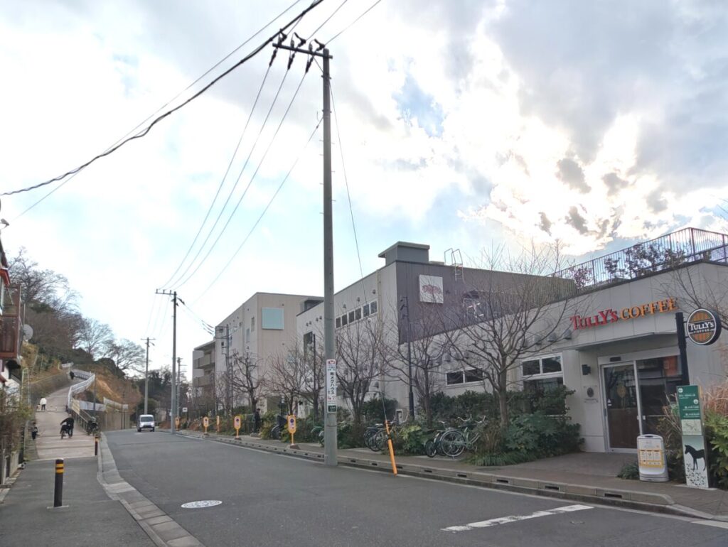 バスを利用するなら、停留所近くの「タリーズコーヒー(コトニアガーデン新川崎内)」が目印。ここにはパン屋さんなどもあるので、ランチやおやつを調達してから丘へ登るのも「通」な楽しみ方です。