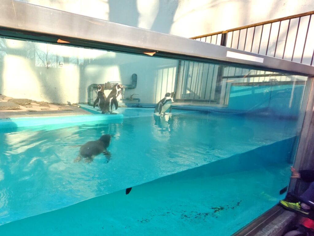 ペンギン: スイスイと泳ぐ姿を間近で見ることができます。