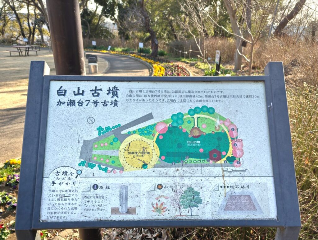 さらに、ここは「夢見ヶ崎古墳群」としても有名です。前方後円墳や円墳など、大小様々な古墳が見つかっており、古代から人々がこの見晴らしの良い丘に暮らしていたことがわかります。