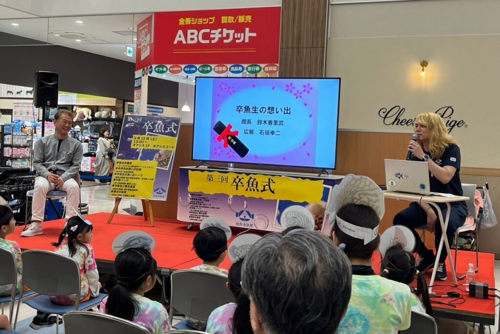 幼魚水族館を語るうえで欠かせない取り組みが、幼魚たちの卒業式「卒魚式(そつぎょしき)」です。幼魚は成長すると姿や生態が変わり、飼育環境も変化します。「大きくなったらどうするの?」という疑問は、幼魚水族館の構想段階から想定されていたそうです。